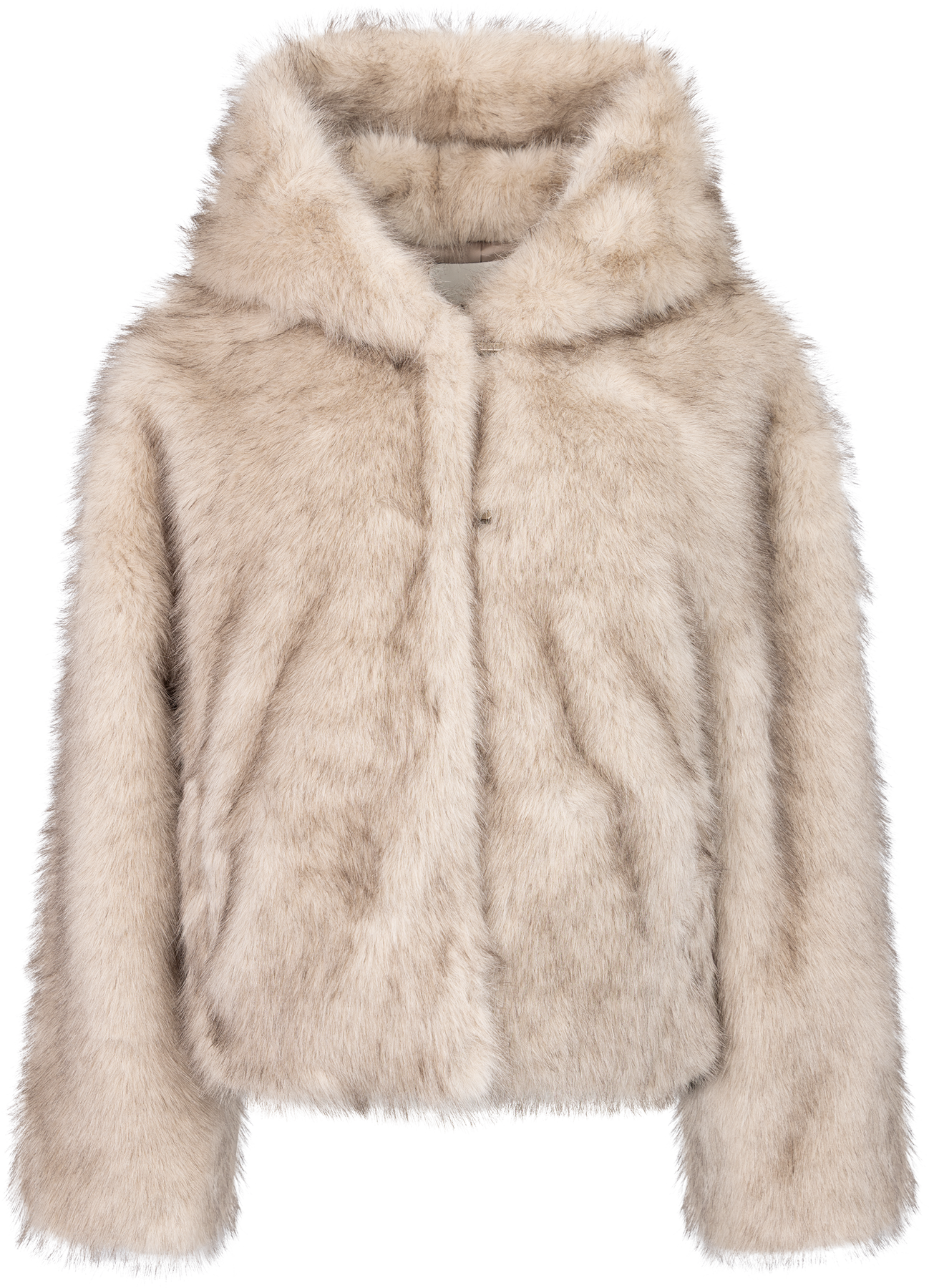 Astrid Faux Fur Jacket fra Bouveti. Eksklusiv statement-jakke i myk fuskepels som gir en luksuriøs følelse. Jakken har en generøs, oversized passform med voluminøse ermer og en stor hette som rammer inn ansiktet. Den varme beige tonen gjør den til et blikkfang, perfekt for kalde dager der du vil kombinere komfort og glam. Lukkes med skjulte hemper i front for et rent uttrykk.
