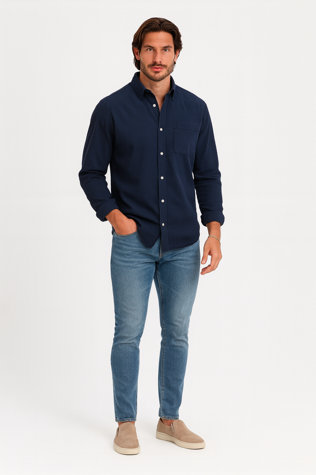 Stilig allsidighet: Denne skjorten går jevnt over fra formelle forretningsmøter til uformelle sosiale anledninger med sin allsidige stil. Enten du forsegler avtaler eller henger med venner, har denne skjorten deg dekket i begge miljøer, slik at du ser skarp ut og føler deg komfortabel.